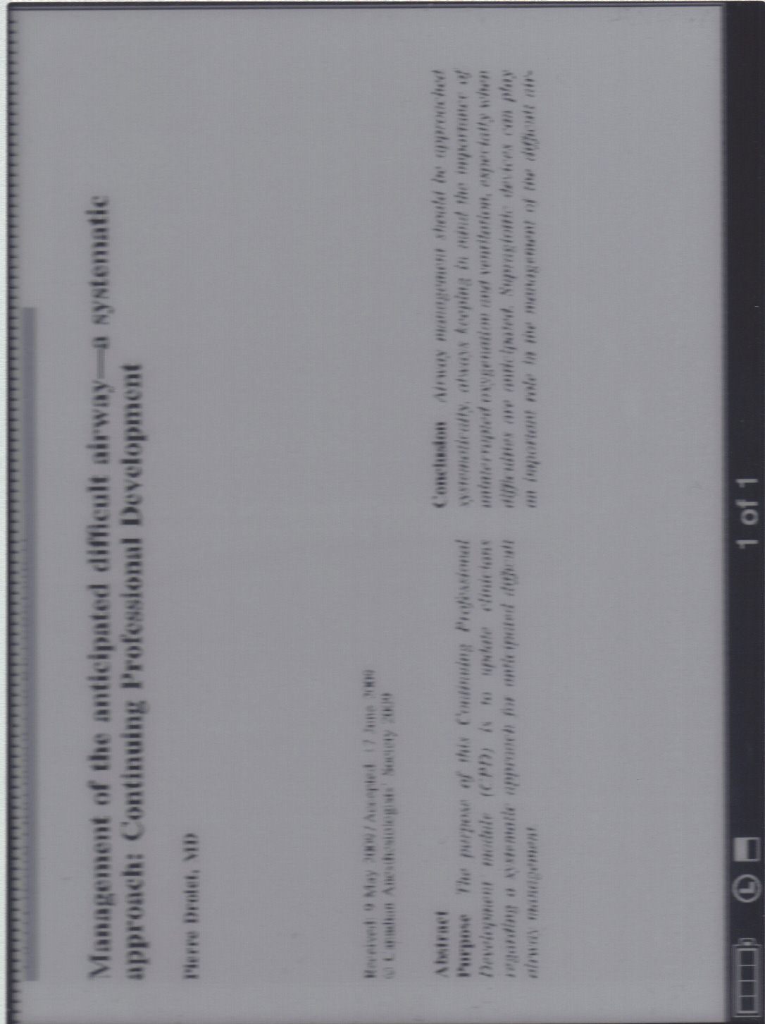 I am looking to get the sony prs505 ereader. I will use it mainly at work to read both books as well as pdf research articles. As I understand, the pdf files cannot be zoomed or manipulated at all, you basically open it in your reader and it fits the whole page on the screen. Is there someone that is willing to open the attached first page of the pdf file on their reader, take a photo and then post it again. I do need to see how big it is displayed before I buy the reader. No use getting it if I will not be able to read it. Many many thanks. Nico de Bruin |