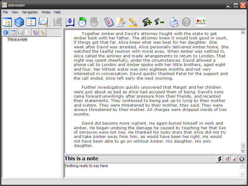 I snapped the early beta of dotReader that's now available for public consumption and made a couple of screenshots for you. The software is still a bit rough around the edges (and I am not happy when you rely on Internet Explorer to display content), but I guess the real point here is that this is the first public e-reader that supports the new OpenReader format which aims to become the standard for e-books (as does Open eBook). Current version: v0.0.7 (perhaps in tribute to the latest James Bond movie) PS: David of Teleread points out that you can already download the full sources of the reader. Very nice! |