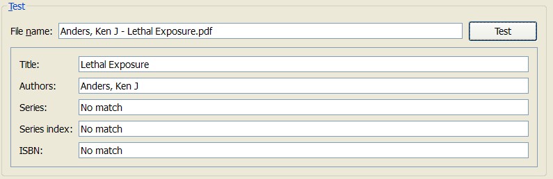 Anders, Ken J - Lethal Exposure.pdf resulted in Title Lethal Exposure (correct) and Author Ken J (incorrect) If I used a filename with a series name as well,it read it as being part of Author name, following the Ken J. The resulting filename was Lethal Exposure - Ken J |
