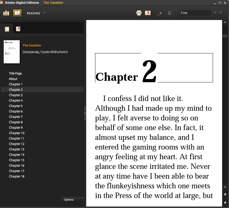 Oh I've tried it and it works, but Adobe DE is a very slow and inefficient software, and War & Peace is 350+ chapters. I'll replace it with something lighter.