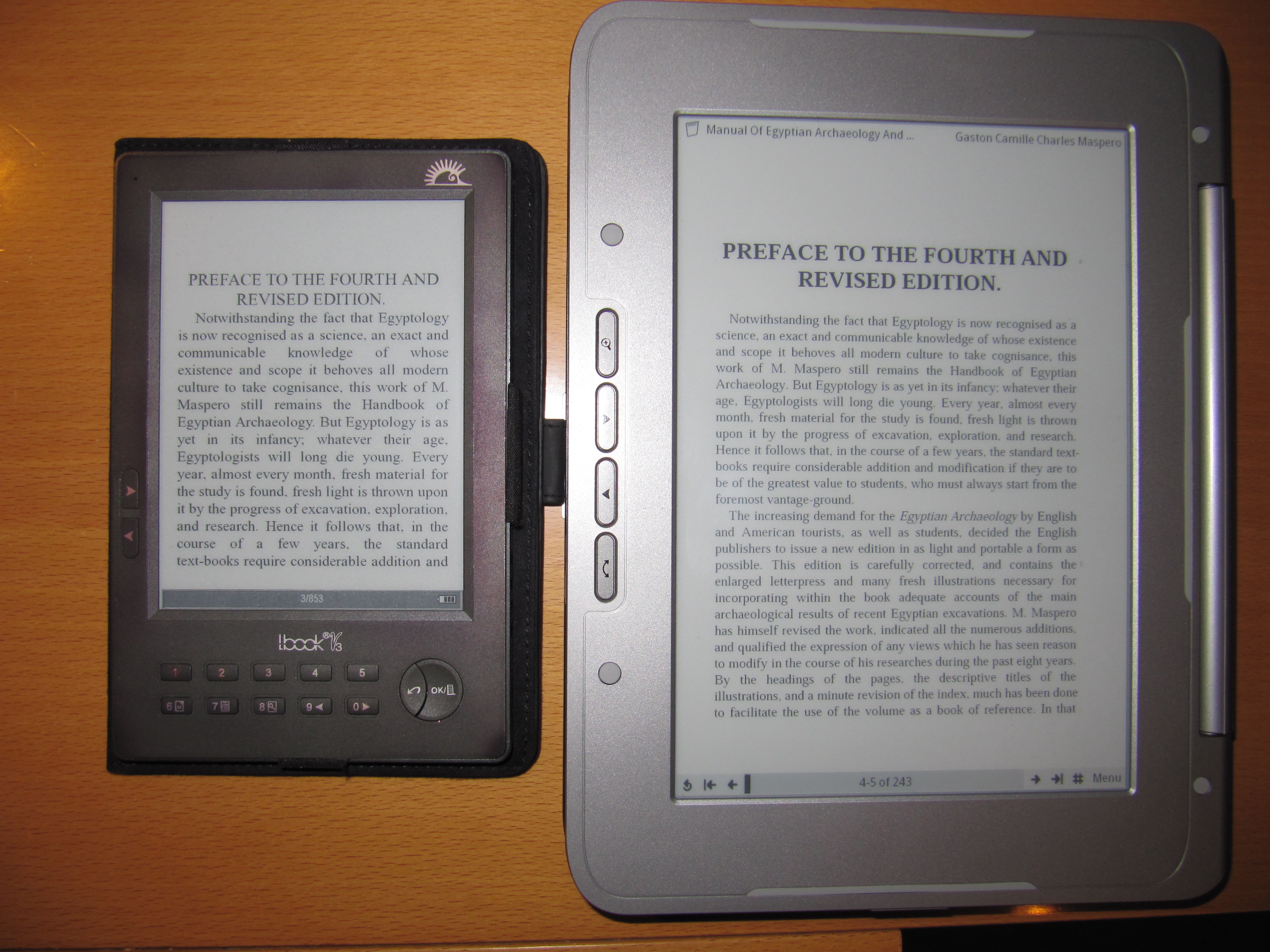 ) und dabei auch noch die Digitalkamera dabei hatte anbei zwei Vergleichsfotos (mit Blitz) des eDGe neben einem lBook V3 (= Hanlin V3) mit Vizplex-Display.