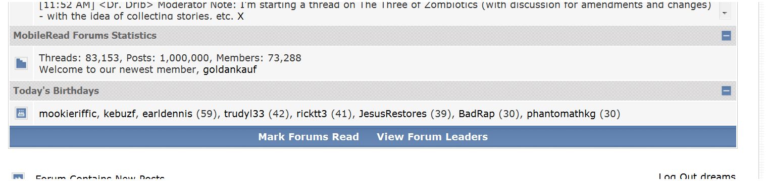 ![]() Congratulations MobileRead on 1,000,000 posts!! |