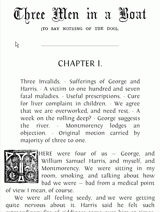 Calibre does a pretty good job converting. Occasionally you might need to refine the TOC. The biggest problem with Mobi is that it is quite restrictive with formatting. One has to various tricks to impose the margins, but there is currently no way to change the right margin. Also text-flow around images is very limited - only if the image has the height not bigger than one text line... To me that is unacceptable. I can live with other restrictions. I accept all the replies Amazon gives for not (yet) supporting ePub - it's all about business. After all, thy invested in Mobipocket. And let's not forget that the true money comes from selling e-books, not readers. In the attached images you can see one of the worst examples of converting ePub in Mobi - take a look at the original thread Jerome, Jerome K.: Three Men in a Boat (illustrated) v6 07 april 2010 where the beautiful work of zelda_pinwheel gets lost. And it's not the converter's fault (I used Calibre), just the Mobi's formatting restrictions. Hope this helps you. [Left two images are ePub, the other two Mobi; screen captures from Caliber] |
