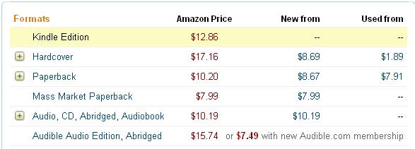 $10.20 for the paperback, $7.58 for the Kindle edition. Doesn't seem too outrageous to me - what's your problem with it?