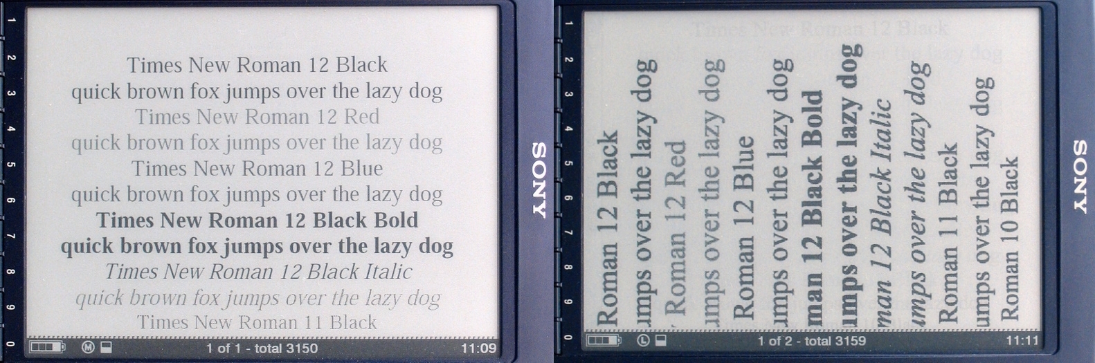 I attach two sets of photos, respectively for Sony portrait and landscape mode. The left hand side photos in each set are original pdfs. The right hand side photos are pdfs processed by pdflrf (Sony lrf format).