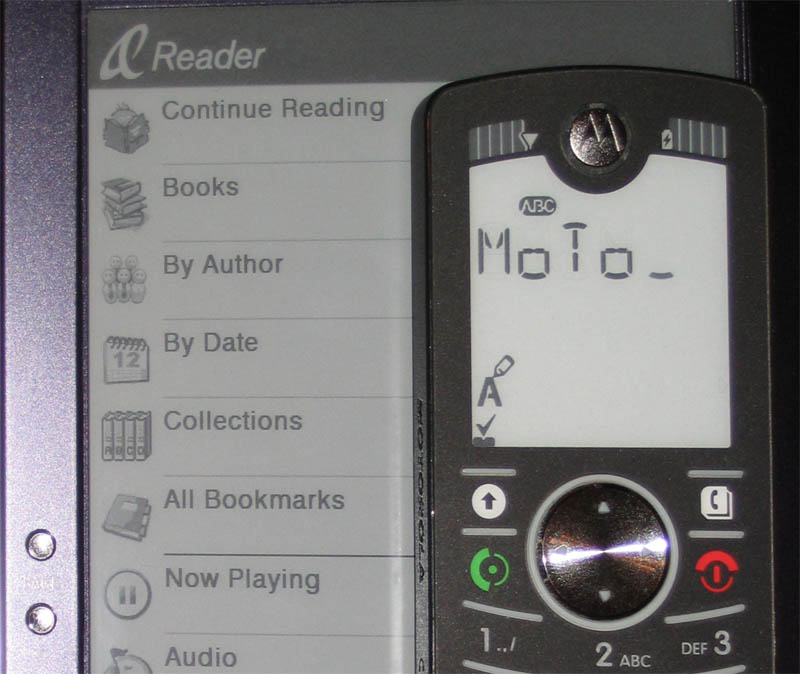 A tak na marginesie, to Motorola F3 ma duuużo lepszy kontrast niż PRS-500, choć nie korzysta z vizplex'a. Ale pewnie ma znaczenie to, że jej wyświetlacz jest segmentowy - nie "pixelowy" (w załączniku zdjęcie). Ech, chciałbym mieć taki kontrast na readerze....