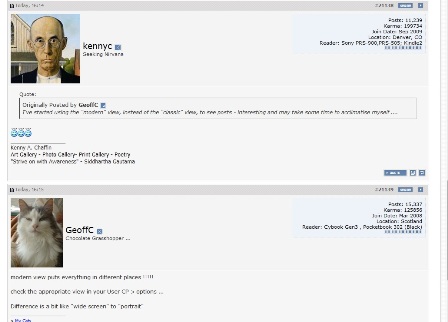 check the appropriate view in your User CP > options ... Difference is a bit like "wide screen" to "portrait" Last edited by GeoffC; 08-20-2010 at 12:19 PM. |