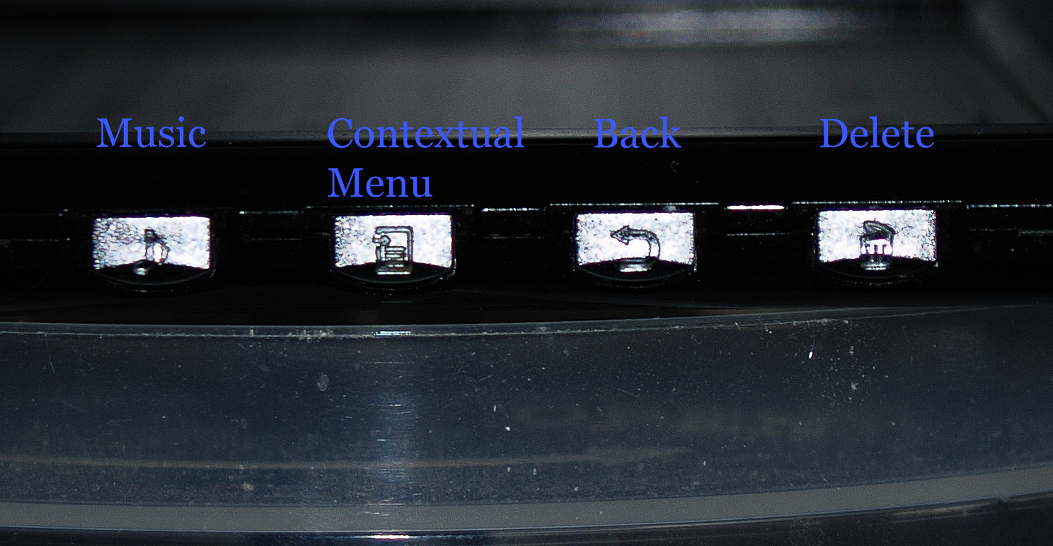 New menus? No. New photos of the battery compartment and the buttons, yes. They're attached to this post. It does speed up the page turns because it flashes direct from the current page to the next without doing an inverse page. However, the real joy with reading is that it's far less intrusive. Of course, as I noted before, there's ghosting in the image viewer so I'd turn flashing on for image viewing. And the Slide Show function does *NOT* work the way I'd presume when one is in a book. (Clearly, it works as intended for image viewing.) When in a book, the Cybook - when Slide Show is turned on - switches to the next book instead of the next page. Very frustrating if someone accidentally switches it on. Here are the button images - and the battery pack exposed! |