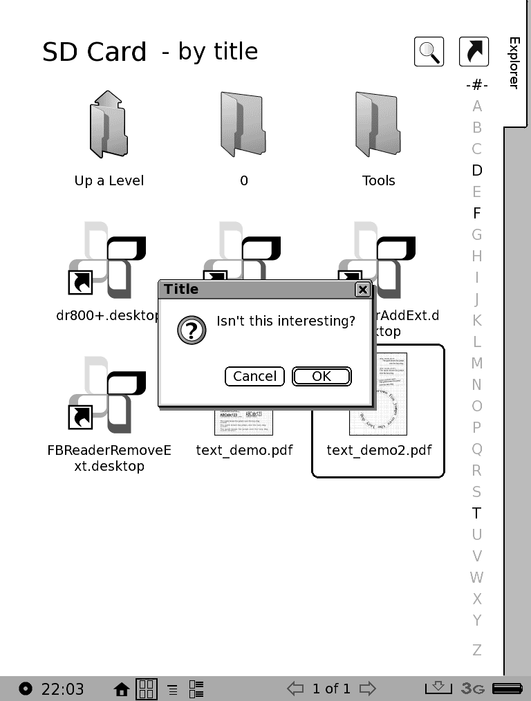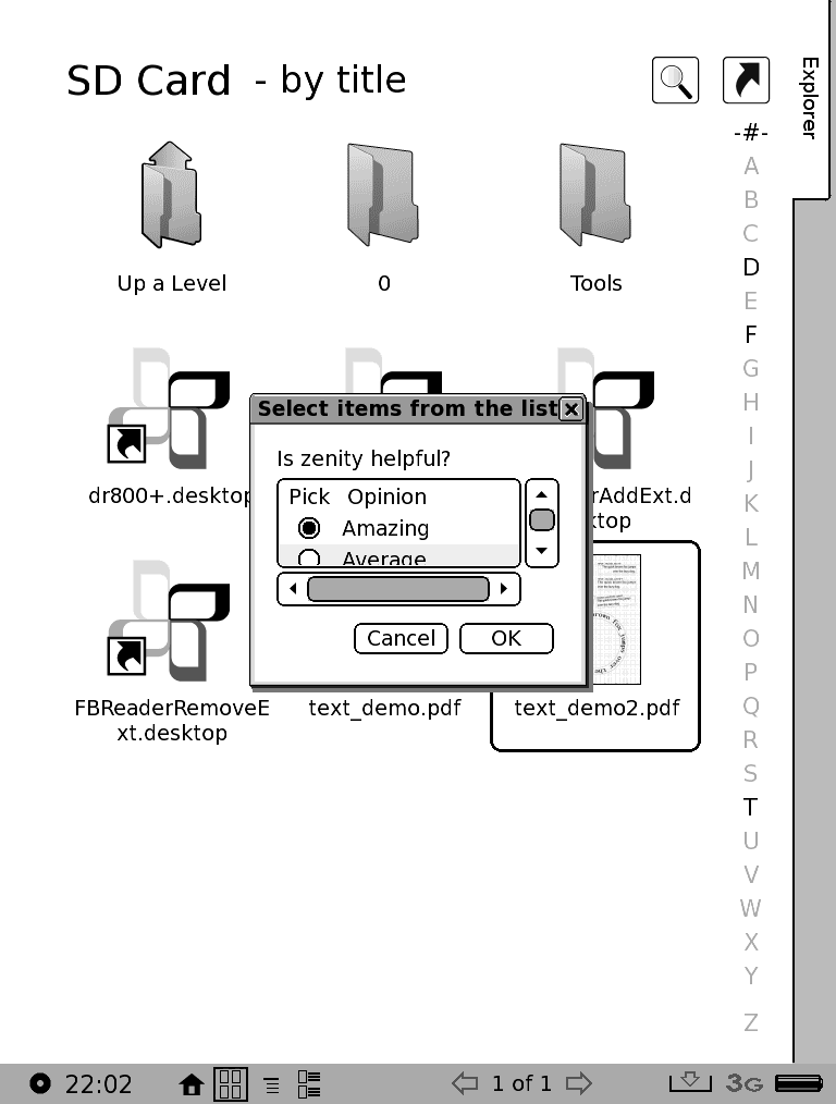 Read message #6 for more information about zenity and hpdf. Hi again, some of the DR developers/porters are thinking on a common core to build our apps on top. This package is the basis for it (on the eReader side), some common libraries and tools already compiled for the DR800 and DR1000 that many apps could share, instead of including their own copies. Personally, my ports (FBReader, Osmo, Xournal, lua, etc) will require this package installed on your DR to run from now on. Included libs in this package: