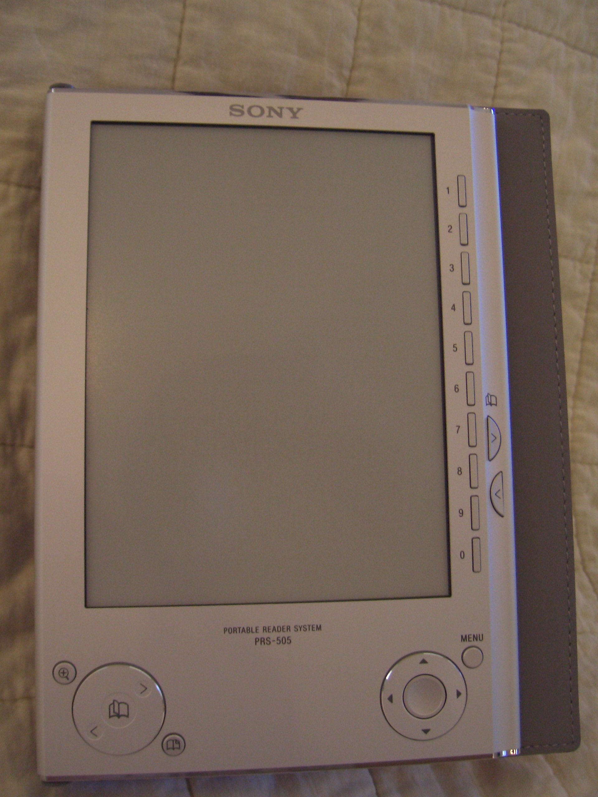 ![]() I love the 505 even more than I loved my 500. I like the menu button and the Enter button rather than the joystick. I think I've gotten used to the On/Off button now. My only problem is I can't figure out how to get collections on the Reader. I set up three nice collection categories on the reader and thought I had moved books into them, but when I looked on the Reader itself there was nothing in the collections. One other complaint. I had a Sony memory stick in the 500, but it won't fit in the 505.