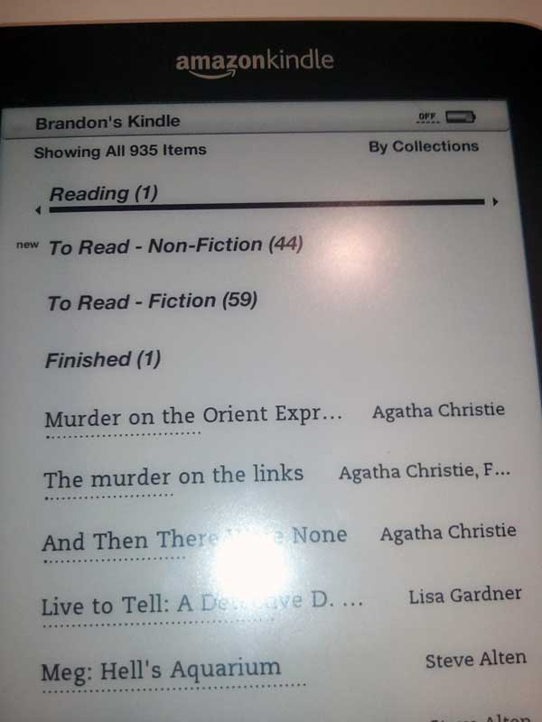935 here. Took a while to load (~12 hours), but that was because Calibre had to convert them all to .mobi. Indexing took another 8-9 hours and just about a full charge.