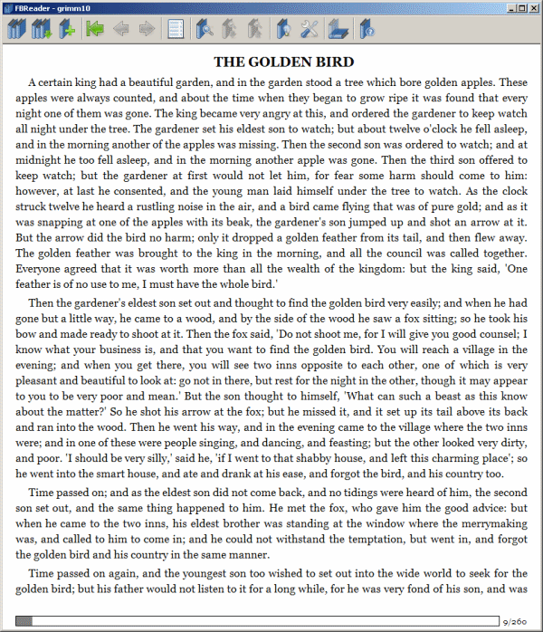 FBReader is removing the excess line breaks, as you can see in both screenshots, compared to what Kacir posted. You can also see that it figured out what the title of this story was and displayed it like a header. Note that the file contains several stories, one after the other. |