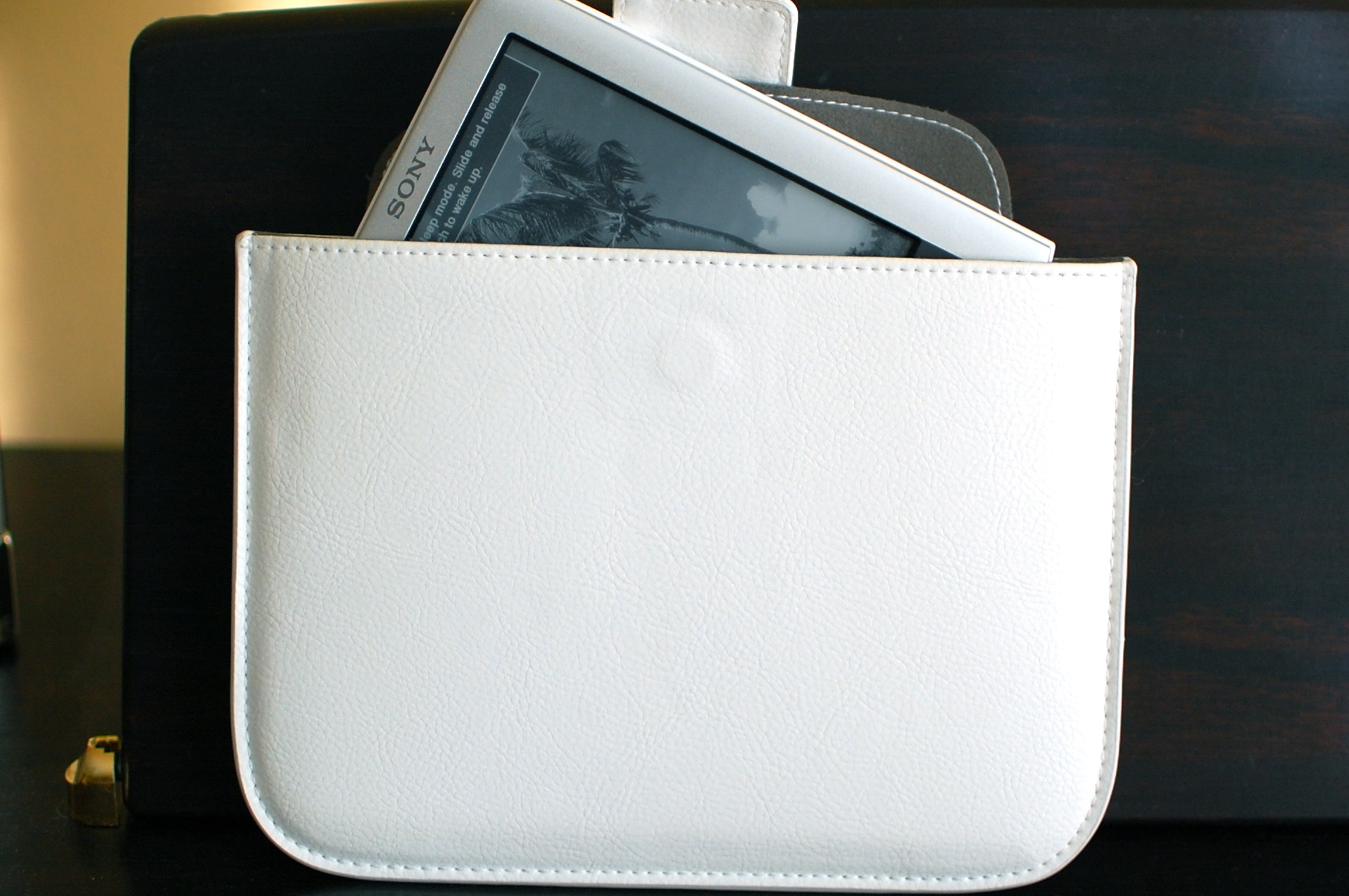 Link: Sony Reader PRSA-CC/W at Sony Style US It is out of stock in the US. But I've noticed it's on clearance at lots of other web retailers. I bought mine on eBay from TigerDirect. The stock photos don't do a clear job of showing two of the nicer features - + it is incredibly well reinforced and stiff, giving great protection + a soft feltish flap covers the opening with the magnetic flap, so none of the device is exposed, which is great for putting in a purse/bag. My only complaints are: - the faux leather is very real looking, but since it is white, it will get dingy quickly - the felt/suede lining leaves fuzz on the touchscreen I'm hoping it stops shedding soon.