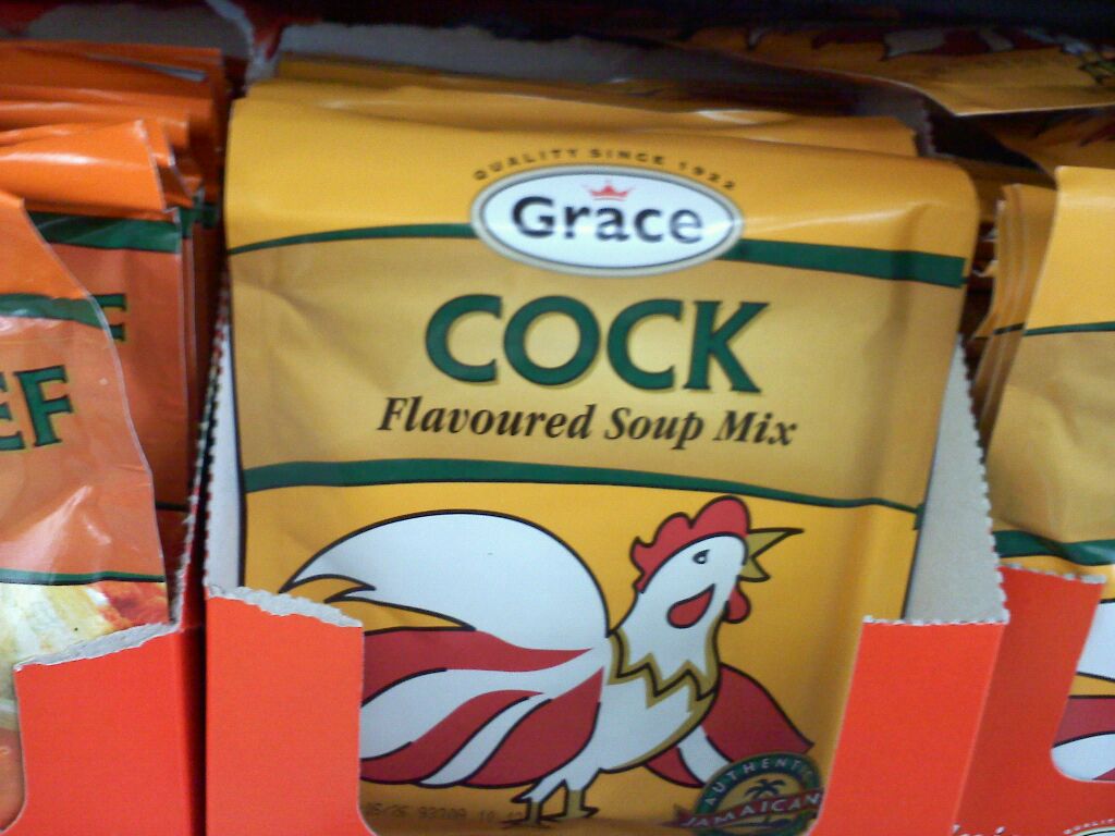 A popular dish in Jamaica is bull's pizzle soup. An old friend was an electrician. At one point, his shop was working on public housing projects in NYC. It was his turn that day to get lunch for the crew, and Lloyd, a Jamaican crew member, put in a request for "cock soup". My friend found himself in a bodega where the signs were all in Spanish and the staff only spoke Spanish, trying to fulfill Lloyd's request. After various back and forth in pidgin, and clutching his crotch to illustrate what he meant, they got the idea and emerged from the kitchen with a foot long bull's pizzle in broth in a quart plastic container. There was hilarity among the crew at Lloyd's choice of meal, but he was unabashed and asserted that they ate it all the time back in Jamaica as a source of strength and potency. ______ Dennis |