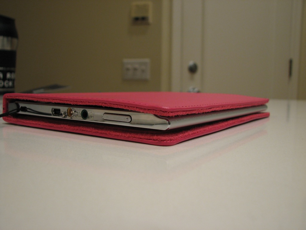 When I came home from work today my new, hot pink Reader cover was waiting on the front steps. It comes packaged in the dreaded blister-pack, which shouldn't surprise me. It also comes with a number of "pass it on" cards and a lifetime warranty card. The cover itself is made of decent quality leather (I'd say shoe-grade), with a very soft matching suede interior. The rear has three pockets, one large (for a passport, boarding pass or small papers), one very small (for a memory card) and one medium with a vinyl window (for a business card). The thickness of the back cover makes the magnets I can feel under there hardly work at all. The front magnets work well, as long as I don't fold the cover all the way back, at least not yet. The cover made a distinct crunching sound the first few times I attempted to fold the cover all the way back, but now that sound has subsided and I suspect that over time the crease will soften and the cover will both open and close more easily. With the back pockets full the Reader doesn't sit flat in the case, so I doubt I'll use the pockets everyday. I will probably take advantage at the airport, though, when ID and boarding pass have to be accessible all the time. Overall I'm pretty happy with my purchase. It's thicker with a softer interior, and I feel like it'll be a teensy bit more protective of the device. Also, it's way cuter than the stock case.