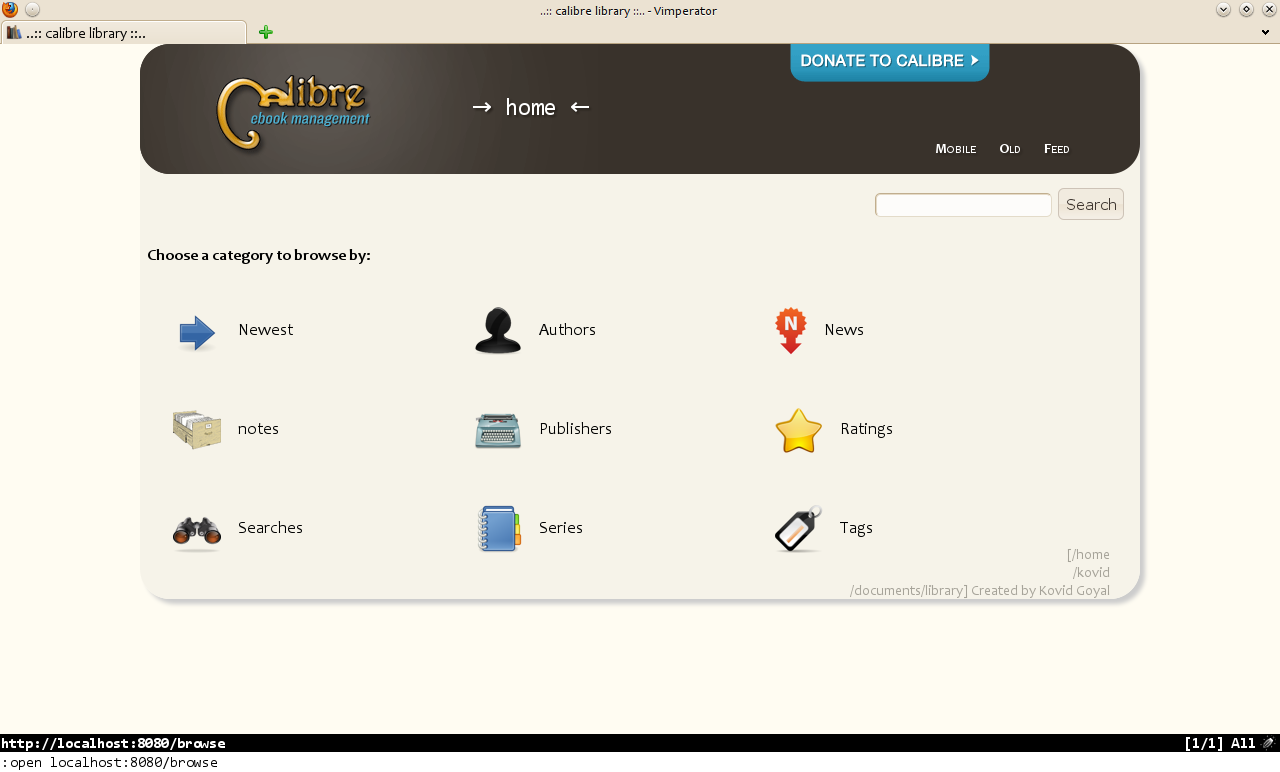 I implemented an all new content server interface in the just released 0.7.24. It allows for browsing by tags/authors/user categories/etc., like the Tag Browser interface in the main calibre GUI. You can access it via /browse, so for example, if you normally access the content server at http://192.168.1.2:8080 you can get the new interface at http://192.168.1.2:8080/browse Some screenshots of the interface are attached. I'm hoping those of you that use the content server will use the new interface and report any problems as I plan on making it the default interface soon. Note that you have to use a fairly modern browser, so no Internet Explorer 6 or 7 in particular. Enjoy. EDIT: And if you really prefer the old interface, it will remain accessible under /old even after this becomes the default interface. |