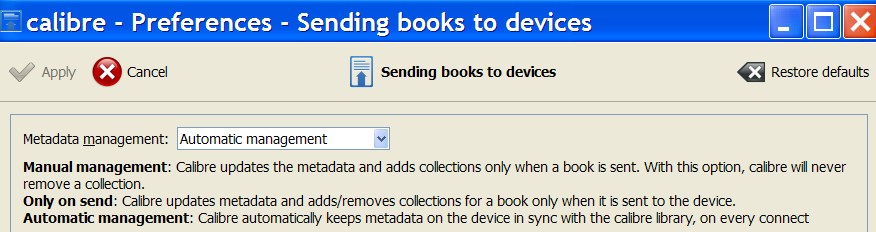 Can be quite disconcertin at times when everything becomes rearranged on upgrading. All of a sudden I had many collections based on authors, series and tags. Easily fixed of course but none of the collections were sorted by series. I have a question if you don't mind my asking. If your collections are by series how do you organise the books(on ereader) by authors who have both series and standalone works? I want my collections by author only and the books to be ordered by series if they are part of a series. I have authors with six series and several standalone books, and authors with one book. Basically if there is an author I like, I would prefer to read the books in series order. A flaw in my brain probably but my mental hierarchy goes author-> series. Series->author just seems wrong to me when deciding what to read. No cohesive or coherency. I know it won't be perfect but the way it used to work was perfect enough for me. Helen |
