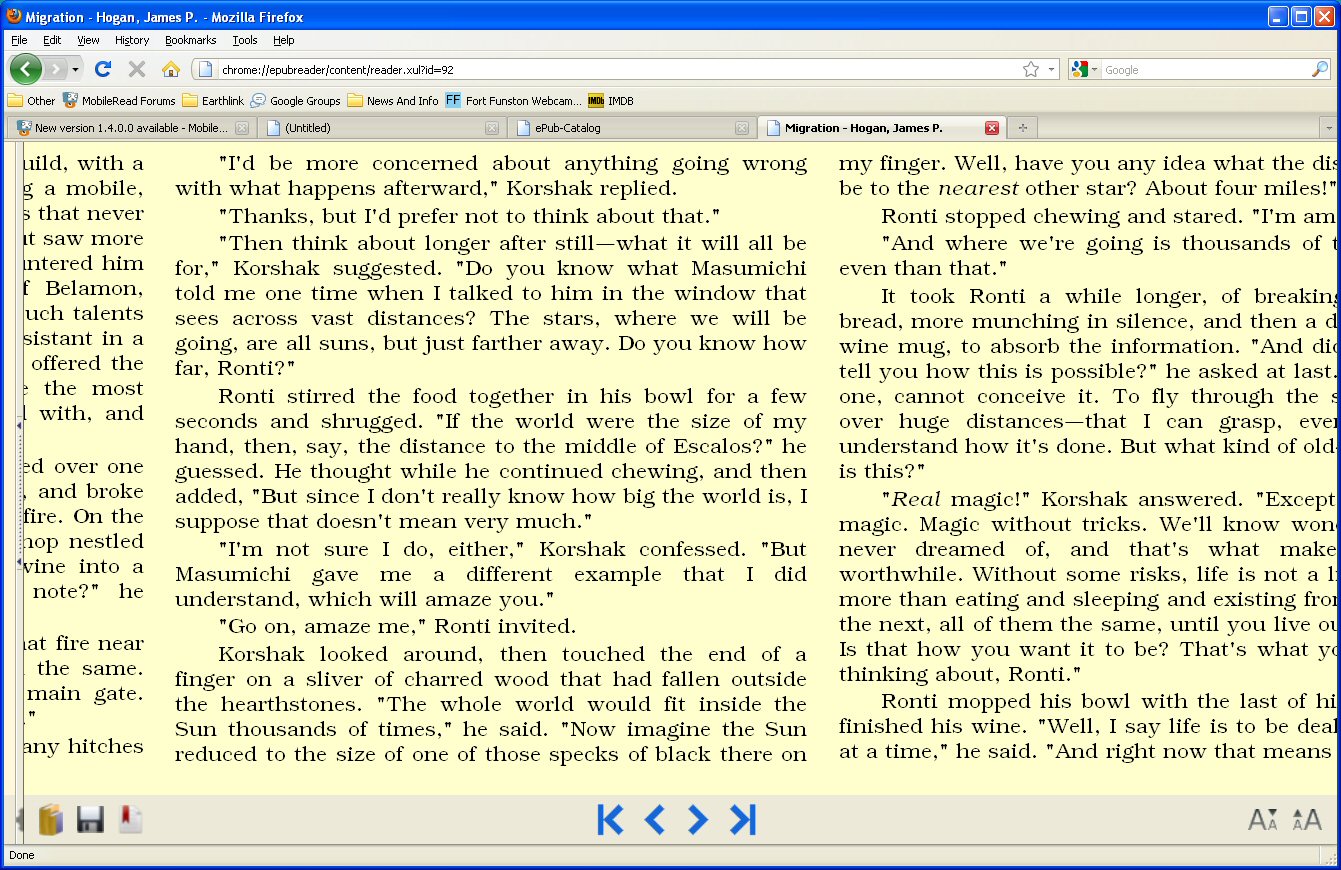 • Now it's possible to read ePub-files similar like real books: jump from page to page without scrolling and switch automatically to the next chapter. This is available in Firefox 3.6 or later.