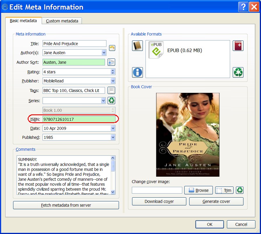 I did indeed think Kovid was talking about deleting the access key. This is because there is no ISBN number in the metadata box, just the isbndb access key in the access key box. I am only searching via author and title; I haven't input an ISBN number.Back to my original question - if there is no ISBN number in the metadata box, then the program searches both the ISBN database and Google Books, is that correct? I will do as Starson17 suggested and simplify the search terms - I thought you had to put the full title and the complete author's name so that was what I was doing. I keep telling myself this isn't rocket science. Wait until I try to use Calibre to actually convert a eBook to a different format! ![]() Holly |