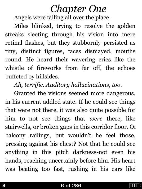 I probably should have thought twice, having the 350-which-has-no-SD-slot-for-recovery, but I was recklessly bold and it worked well enough for me. I love being able to change the default font whilst letting EPUBs keep their embedded fonts (if they have any), the screenshot feature, and the customisable button functions. After experimenting with a lot of serif fonts, I've settled currently on Droid Serif, though I think I'll switch between Georgia and Fontin occasionally.1st: Droid Serif 2nd: Fontin 3rd: Georgia Last edited by viviena; 11-05-2010 at 08:46 AM. |