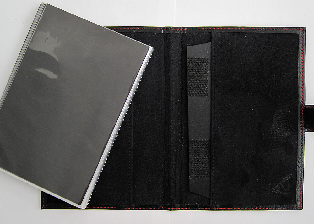 The size is 4-3/4 x 6-3/4. So there is a little extra room on the top, bottom and right side. I don't mind as it provides extra protection in the event I drop the case. And the wallet is pretty stiff too. The inside is a sort of micro suede. The tab is magnetized and sticks to the front cover pretty well. Total cost was about $16.00 ($16.95 for the wallet + tax - 10% discount). To adapt the wallet, I first used small nippers to snip the stitching holding the vinyl photo sleeves in. Then I cut a black plastic folder to insert into the inside pocket and serve as a base to affix velcro. I put another velcro piece directly on the inside pocket near the opening edge. So the reader is anchored in 3 places. The black plastic insert is optional. You can just put all the velcro right on the inside cover if you want. Here is a link showing the 3 photo wallet styles they sell which fit the 350. If you're considering buying one, first check the Barnes and Noble page at www.retailmenot.com as they frequently have online discount coupon codes or links to printable in-store coupons which are valid for stuff like this (but not for Nooks). |