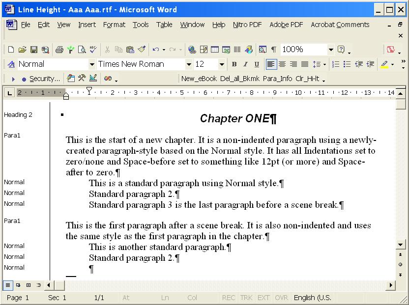 However, on the whole I've found that saving the RTF as HTML webpage-filtered and importing the HTML to Calibre instead, is likely to retain more of the formating. It will certainly retain blank lines, which (at least on my ancient version of Word) gets saved as: Code:
