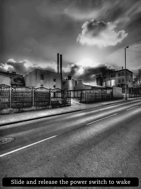 I probably should try this. Even though I've had my own screensavers for two weeks or more, I still occasionally forget that I need to SLIDE THE POWER BUTTON to get my password prompt or to do anything. And since I really need to tweak my photos and chose ones with more contrast, this might be the opportunity to add the STAMP.