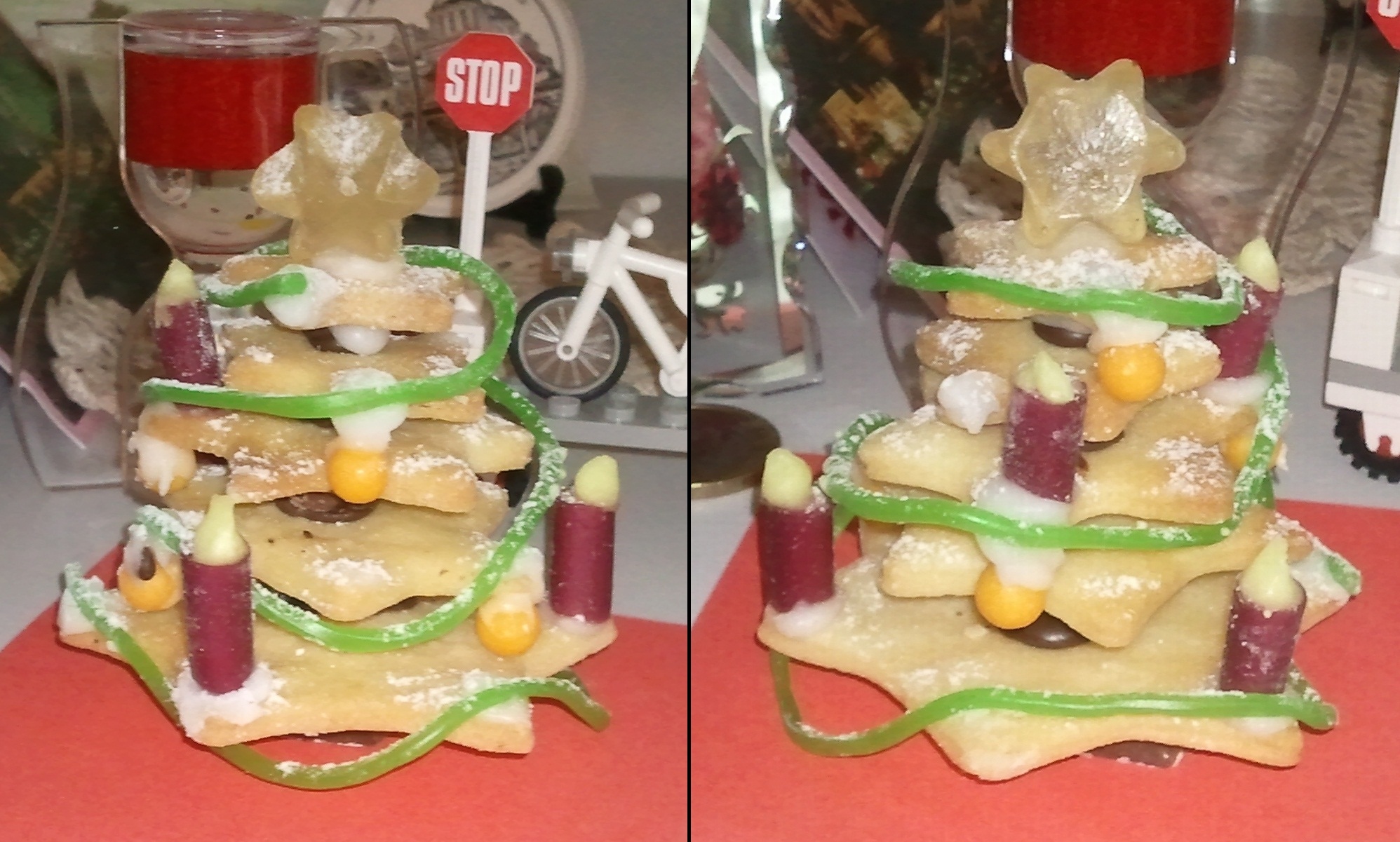 St. Nicolaus (a.k.a. Stephi) came by yesterday night and gave me a beautiful Christmas tree made out of edible things. I don't think I ca eat it, it so cool!