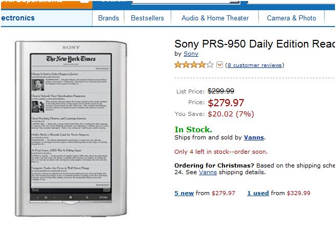Amazon have the PRS950 for $279 with no tax for me in California. Again, see the attachments. On the Sony site the 950 is $284. Last edited by Prince Hal; 12-12-2010 at 06:43 PM. Reason: Forgot title. |