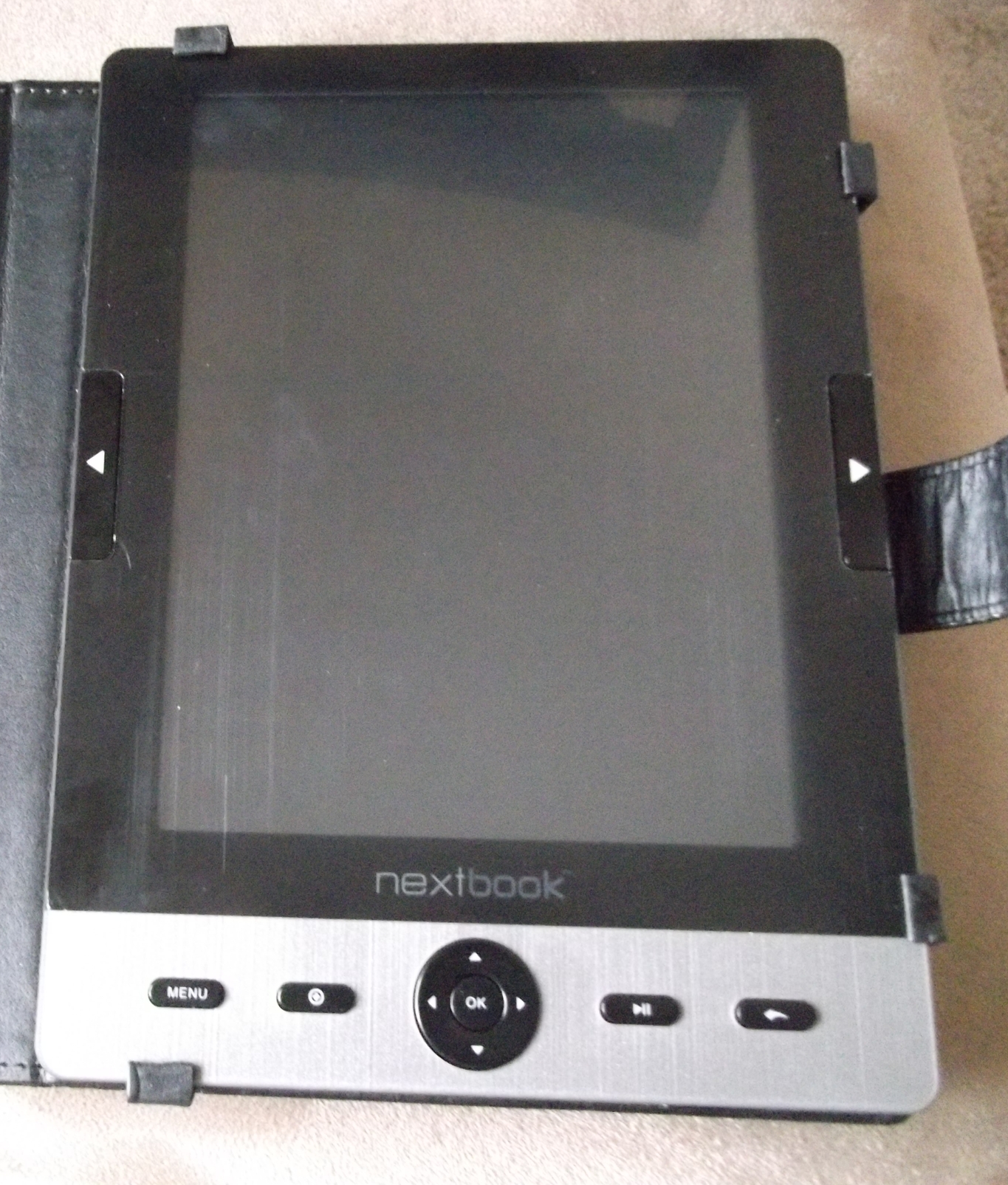 What I have here is a nice little reader, that seems to have been discontinued before it got anywhere. It has been advertised in one of the local liquidation places here in Saskatoon. Picked it up for $89 ($99 listed in flyer). It is brand new and not a refurbished unit. Comes with a nice fake-leather case, wall charger and USB cable (another one for the collection). The only complaint I have is that the power button has to be held for 5 to 7 seconds each time I turn it on or off. The only installed app is Adobe Reader Mobile. This is about the only thing I want to try and change about the reader. The app works just fine for the most part, but there are better ePub readers out there I would rather have installed. Page turn times are equal to my Jetbook. Oh, one other complaint is that it doesn't go back to the page you left off at after you turn it off. It always starts back at the menu. Once you reselect the book, it goes to that page again though. Here is the (hidden) wedsite URL for it. You cannot access it anywhere from thier homepage, I came across this link in one of the many eReader product announcement blogs somewhere. http://nextbookusa.com/nextbook1.asp Yep, no specs, nothing, listed, just blank text boxes. Display: 7" TFT (not touch) Memory: 2 gig Resolution: 800 x 600 eBook Formats: EPUB, PDF, TXT, FB2 Music Formats: MP3, WMA, APE, FLAC, OGG, WAV, AAC Picture Formats: JPG, BMP, GIF Built in Lithium Ion battery. Full charge time 4 hours. Playback time: eBook upto 10 hours, music up to 8 hours. Size: L 195.1mm x W 145.7mm x H 13mm Weight: 375g Micro SD Card: Up to 16gb Auto rotates the screen to any direction you rotate the device. Can be turned on and off. I really enjoy it so far (1 week in), and works great for ebooks. I convert everything to ePub format anyway, but it also handles TXT, FB2 and PDF. I don't have any FB2 format files to check out, but the other formats all display just fine. The couple MP3's I tried worked fine - I will never play another on it though since I don't listen to music while reading. Displayed the few dozen pictures I put onto it just fine as well. It does support Adobe DRM and Adobe Digital Editions. You can drag & drop your files from your PC into which ever folder is required; EBook, Music, Photo, Digital Editions. It has a built in File Explorer, so you can create your own folders on the device all you want, browse through them and select-to-view any of its supported formats. I don't have a spare micro-SD card to plug into it to see how that works, I may pick one up this morning. Calibre did not recognise it as a default device - BUT I have most device plugins disabled except my Jetbook ones, and a few I enabled that seem similar to this device. I will keep playing and see what happens. Save to disk works fine though. I have been trying to figure out what OS it is running, but hunting around the net for the last few days has not helped much. It may be Linux or Android 1.5 - only guessing at this point, but leaning towards Linux at this point. More of the confusion is where it came from. The box and manual all point to Zero Corporation (Hong Kong); Maufacturer name in the Settings lists NEXTAR, Production Name: NEXTBOOK v2.0.0. Searching more around the net, it seems like it now comes from E-Fun, and is/was to be distributed through Nextbook USA. Anyone know a way to find out without having to open it up? It's big brothers, the Next2 and Next3, play movies, have WiFi, etc etc. Seems very similar to the Slick (not the Foxit eSlick!) being discussed in another thread right now. They are almost identical in layout, but the Slick firmware seems to allow movie playing. The folks with the Slick reader seem to want a lot of the options that the Next1 has already; Real Page jump (not a % jump), 5 font sizes, 5 brightness levels, auto page turn ooptions, auto shut down options, etc. If someone wants, I can add here what all the various menus contain as there are quite a few little things that make me really like the reader. |