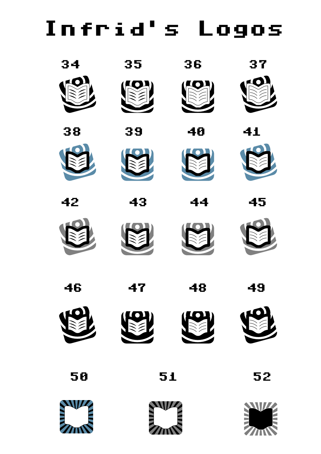 Great art, Tom. One suggestion: A logo is usually in the top left of a page, right? I don't know, but to me the angle of the book seems wrong. What if you rotated the whole logo by 45 degree counterclockwise? Like I said, I don't know.
