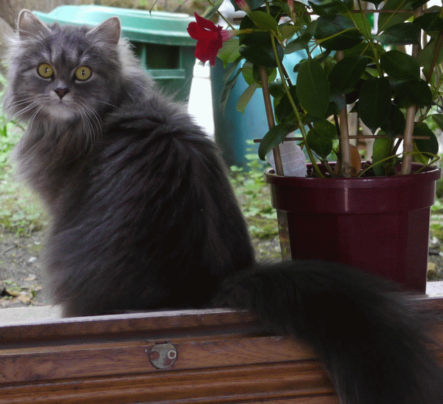 Beautiful!!! I had one that looked a bit like that when I was ... oh, nine or ten. It got along just fine with the dachsund and the rabbit we had at the time. We called him (yes, him, nine year olds aren't concerned with gender issues, apparently), Bluebell.