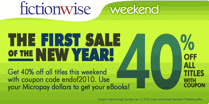 Fictionwise 40% off - Valid through Sunday Jan 2 2011