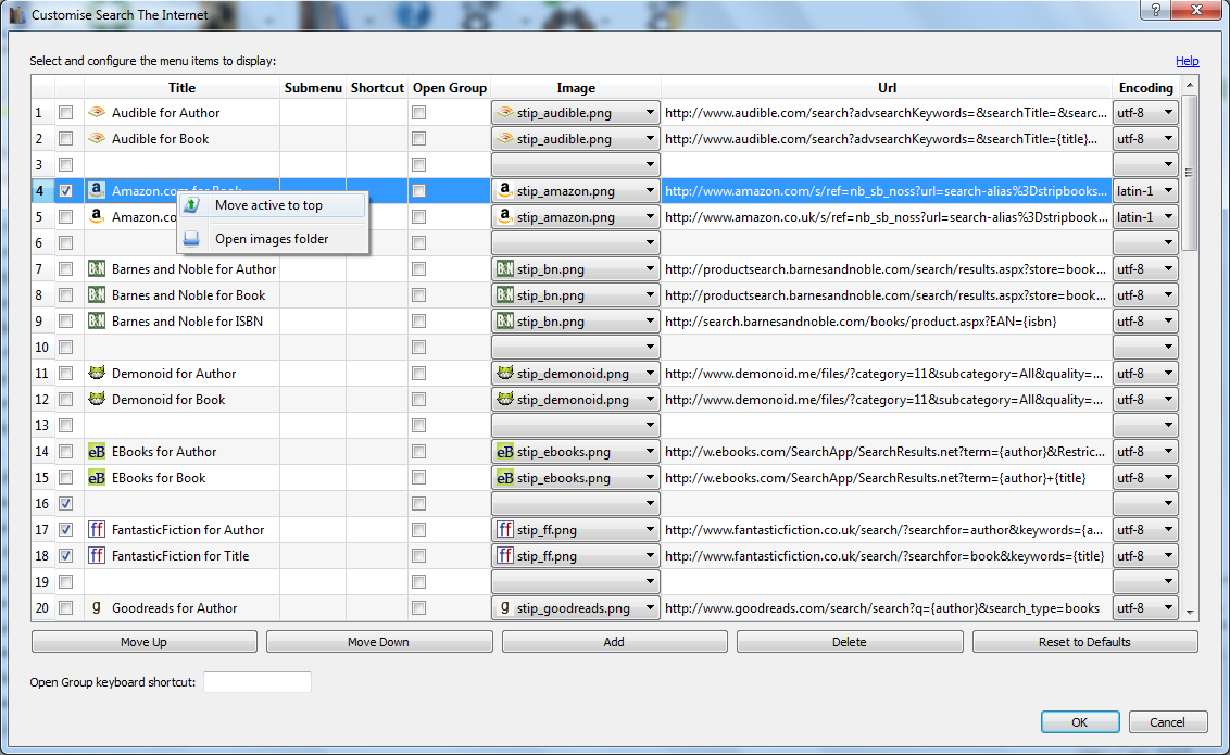I have also added the ability to optionally specify a submenu name to allow grouping menu item URLs. So for instance you could put all the Amazon related ones under an "Amazon" sub-menu, or perhaps ones you don't use very often under another menu. Just to help keep the context menu manageable if you decide you want to have access to a number of these...