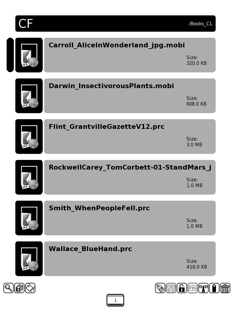 The multi-level folders are accessible on the iLiad, but the primary file interface (the content lister) is showing its age and is sub-standard relative to newer e-book readers. It only shows 6 files per page, as shown in the attached screenshot (if the text looks bad the image has been rescaled by your browser, click on it to get the full sized image). I don't know how well the iLiad's web browser will handle downloaded websites, but if a web browser can navigate the downloaded site on a desktop it should also work on the iLiad. An alternative is to create a Plucker file on your desktop (e.g. using Sunrise) and then read the plucker file with FBReader. I have never used this for an entire web-site, but it works well for simple page hierarchies. You can test Sunrise and FBReader on a Windows desktop to see if they fit your needs. So far as I know, you can only highlight and make notes in PDFs. |