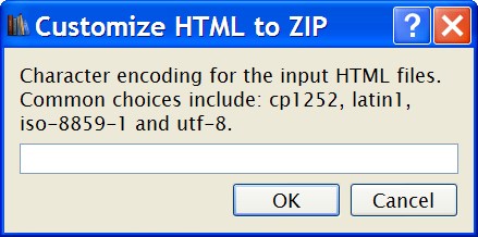 Specifying the encoding for html to zip is only required if the HTML file itself does not specify the encoding. E.G. something like this is missing: