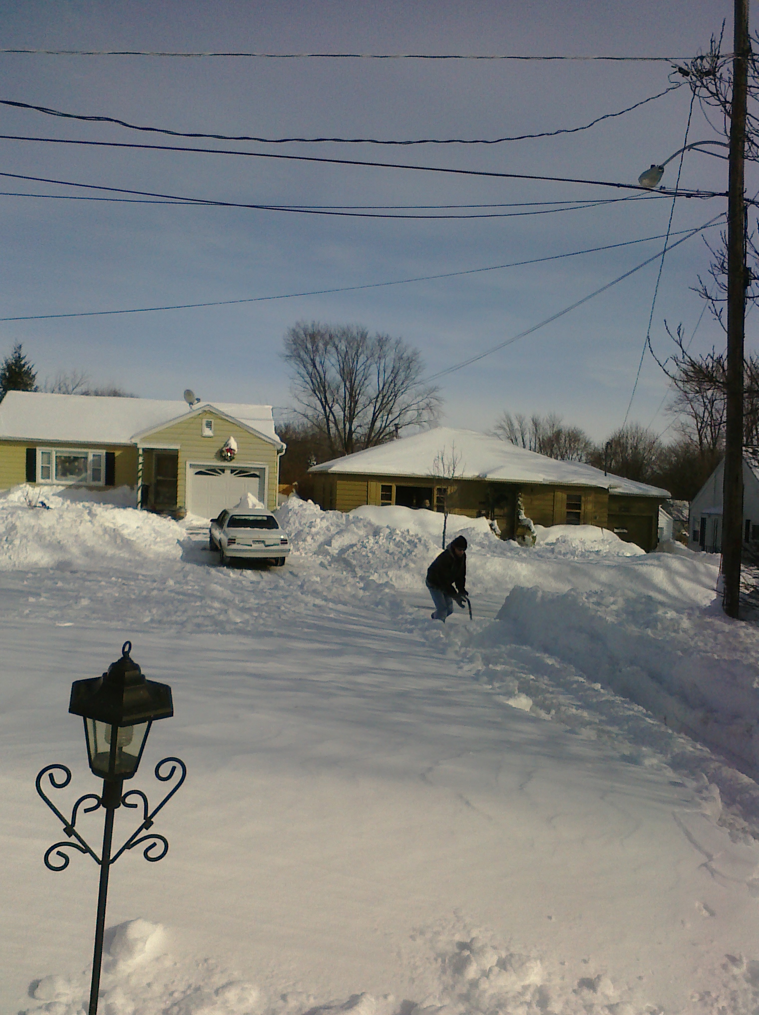 Chris tackled clearing the driveway so we could get out in steps: Step 1: shovel for about fifteen minutes. Step 2: Say, "to heck with this!" Step 3: Start 4WD Blazer and put into 4LO. Step 4: Stomp on it.
