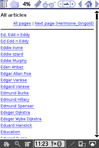 And attached, are some examples of the FULL Wikipedia, Wiktionary, and Wikiquote in Plucker format, which does not require separate files or indices, created and converted by myself.