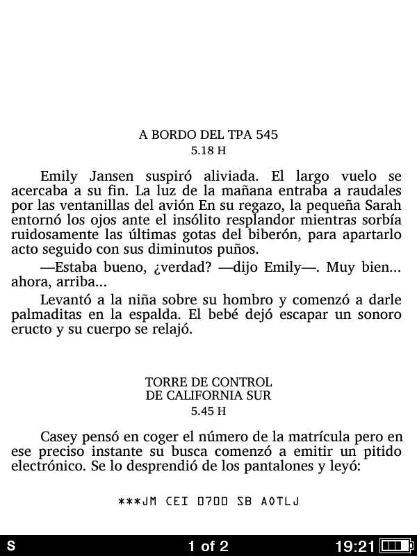 In the attached file I have an extract of an epub, where I try to load two different fonts (ORC A Extended and Courier New), which are used in specific parts of the book: Normal text is shown in default font (something similar to Times New Roman), there is a centred line with text "***JM CEI 0700 SB AOTLJ" which is shown in a "pocket calculator style" font, and some code lines with a fixed-width font. Both fonts are embedded into the epub file, and checking the file with Adobe Digital Editions, it works perfectly. Here is an image with the desired result: ![]() I'm thinking on buying the Sony PRD-650, but first I would like to check this file is correctly shown. Anyone with a Sony PRD-650 could check it and confirm that three different fonts are shown? Thank you!!! |