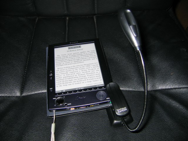 I originally posted over in the Cybook Accessories forum. However, since this is the thread that everyone gets referred to, and since the Tensor Full Spectrum Booklight would work just as well with a Sony Reader, I thought that I'd better post here as well and link across to it. Here's the post with the info on the Tensor: