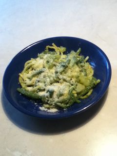 Sunday lunch has been the aperitivo (Main attraction is white celery stuffed with Gorgonzola and a rich Stinger for Wife, the white cylinders is palm hearts, yellow things are chips that go so well with the green olives), and Pesto alla Genovese. One cooks string beans and slices of potatoes together with the pasta. The pesto is commercial, but fresh. The ideal end would be small French pastries and marzipan, but we are all on parole.