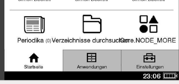 work nice, i must test it now first "error": the new text in home screen overlap (with german settings) i ve there 3 entry: periodika , verzeichnisse durchsuchen , CORE.NODE_MORE the 2. and the 3. overlap What means: CORE.NODE_MORE ? Is that a translation error? regard Last edited by noxx; 02-22-2011 at 05:09 PM. |
