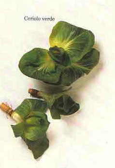 I did a little research on the wonderful chicory. The official name is "Ceriolo" Here it is in the green variety. I could not find a picture of the red one.