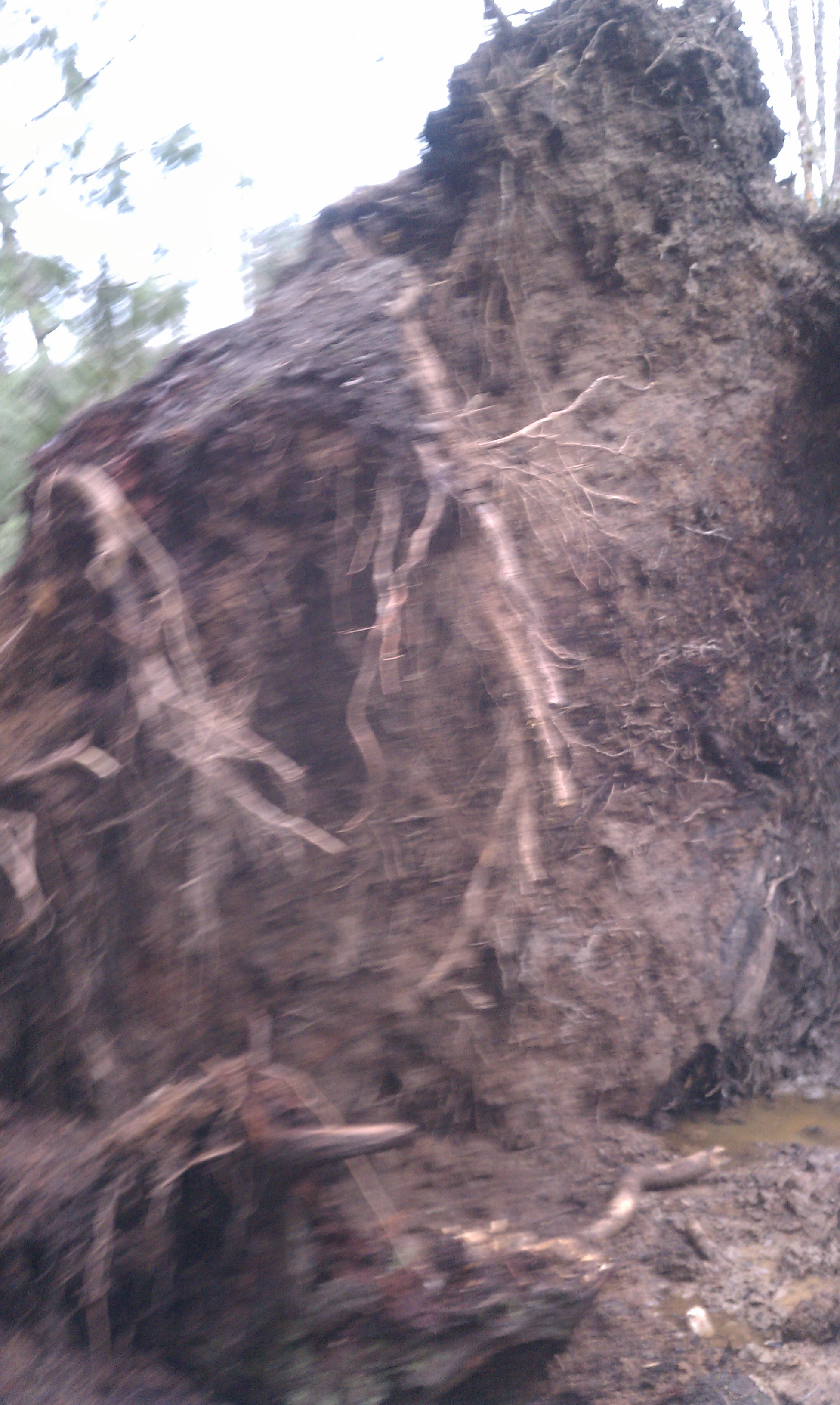 so we have had some fairly high wind storms this year, but we haven't quite gotten the over the top snowstorms (yet). a lot of big trees have been going down. someone said the other day that part of the problem is that the winds are coming from a different direction than normal. I'm not too sure about that... this is one of the recent victims here on the farm. it's hard to give a perspective, but if it helps, the horse is 17 hands. the rootball is at least 15 feet at the highest point