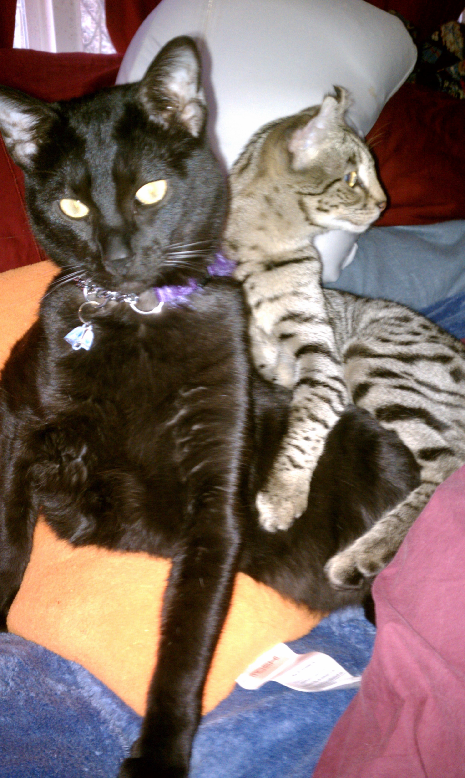 it's been awhile since I have loaded some Strider and Arwen pictures. here is from a cuddle session a couple of days ago. the hole in Arwen's side is from when she was stuck in the ceiling the other day ;o( she scraped it on an exposed nail