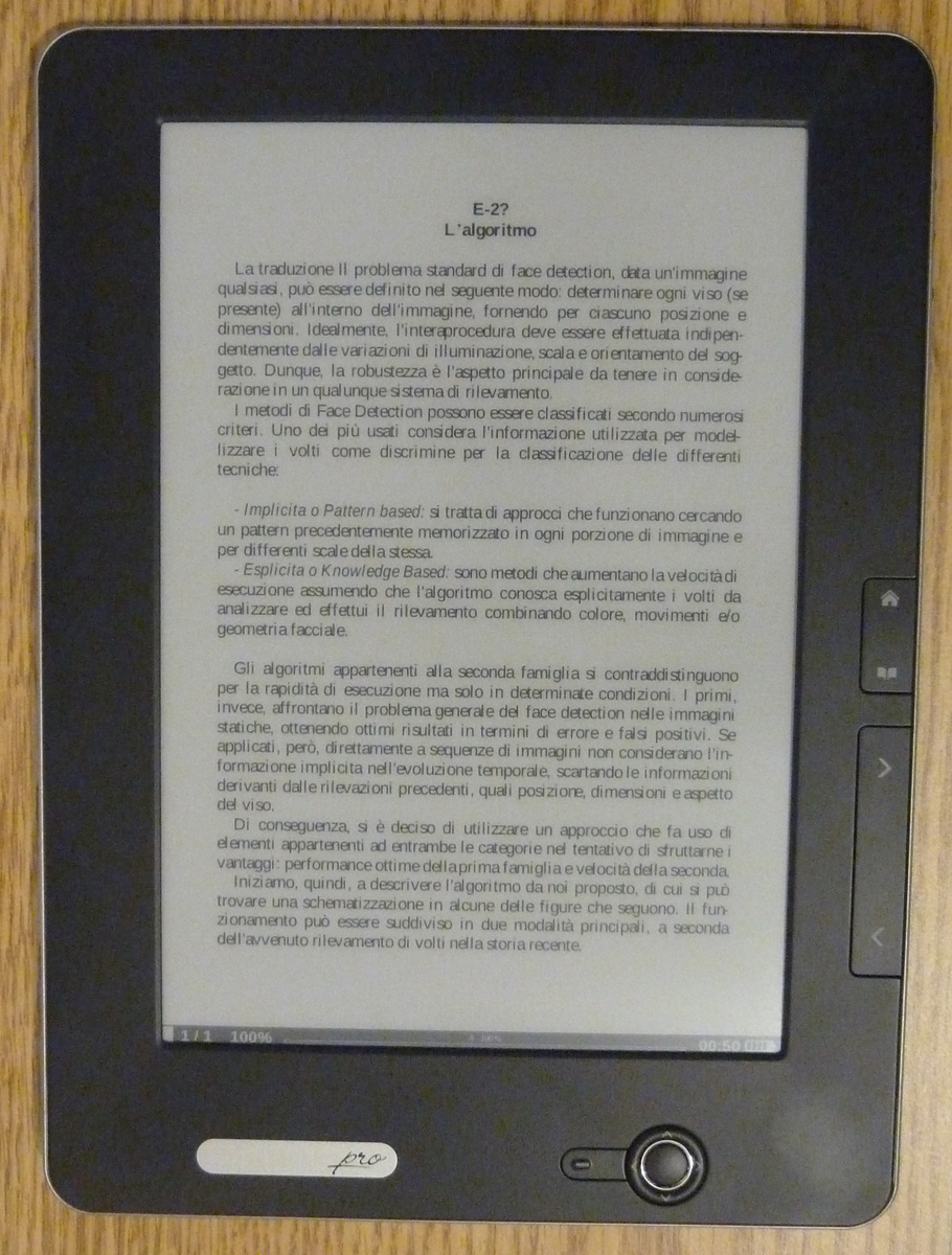 1) First a very newbie one: where is the internet browser, I really can't find it... 2) I have a "homemade" pdf saved from microsoft office, the original document use a times new roman font and when I open it on a pc with adobe it shows perfectly fine. In the reader, instead, it shows "correctly" with pdfviewer (even if some of the letters are too close to each other which is not optimal...) but with the adobe viewer somehow it is shown with a completely different font almost unreadable. This doesn't happen with any pdf downloaded from the net (even if the letter issues in pdfviewer remain, that's why I prefer ADE as far as now). I know I can simply use the original doc but I would really like to know why this happens (you can find some images of what I mean attached) 3) I know themes does not work yet but is it possible to change off screen and start up image? 4) I setted a "hold ok button" to hide status panel, however, it doesn't work at all in the image viewer and in the pdf viewers or FBreader it hides and reappear right afterwards... why? 5) Does anyone know which is the exact maximum resolution in pdf mode and in the image viewer (considering the status panel)? this would be very helpful for optimal image resizing... (just to be clear I have already uploaded to 2.04 firmware, even if from a sticker on the box it was supposed to be already loaded) |