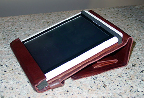 cover1: front cover2: back, with a pocket for a small notebook and pen(cil). cover3: cover open, with the Cybook Gen3 inside. The ring in the mid bottom is attached to the cover, and I can put a string through the hole in the Cybook's bottom left corner, and attach it to the ring, thus preventing the Cybook from sliding out of the cover. The left part is a big pocket where I keep a cleaning cloth. The ~1in flap in the left can be used to keep the whole lot closed, but I don't really use it. And yes, I should wash it ![]() cover4: Cybook extracted, to show the nice skin. |