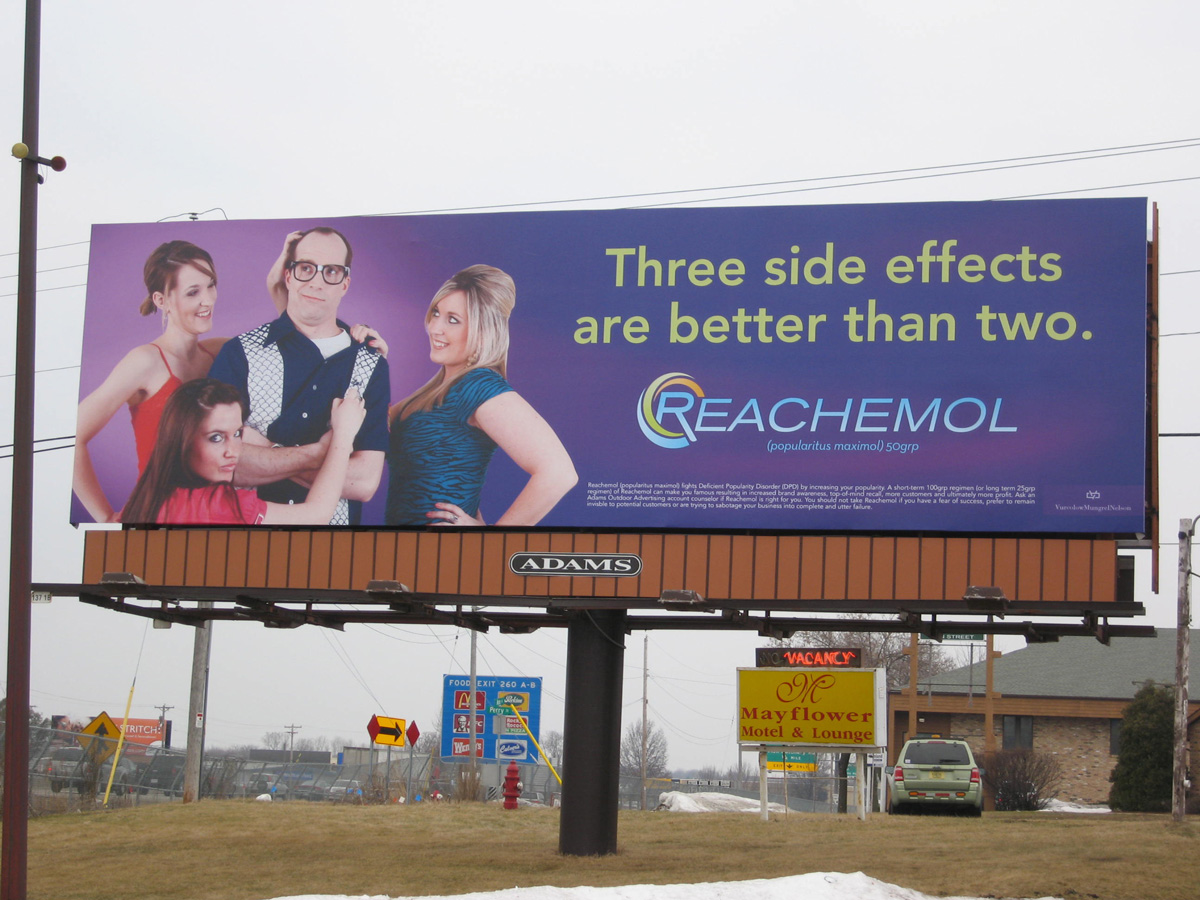 Has any one else seen the Reachemol ads that have been popping up on billboards all around the country? I'd never even heard of DPD (Deficient Popularity Disorder), but it's nice to know there's a drug for it!