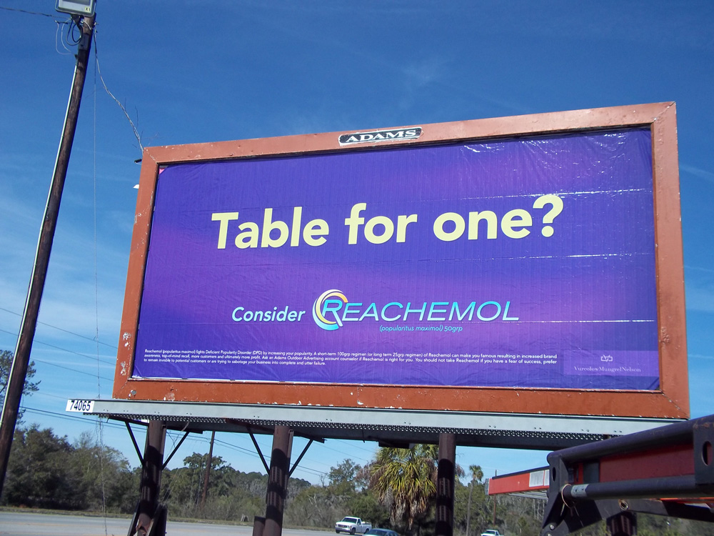 Has any one else seen the Reachemol ads that have been popping up on billboards all around the country? I'd never even heard of DPD (Deficient Popularity Disorder), but it's nice to know there's a drug for it!