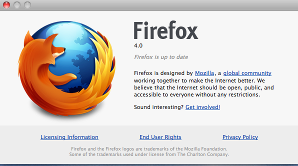 mine's the same. I don't recall updating Firefox myself, somehow the browser did that itself 4.0 beta 11, I think...